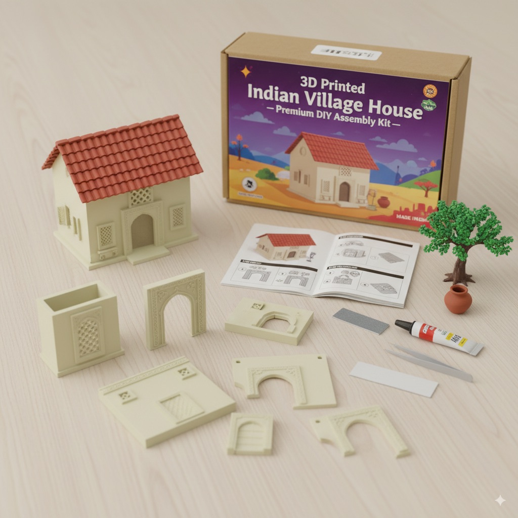 Bring Indian culture to life with this fun and educational DIY Indian home model for kids! This 3D-printed miniature village house kit lets children build, learn, and explore the beauty of traditional Indian architecture. Made with eco-friendly materials and designed for easy assembly, itโ€™s perfect for school projects, gifting, or creative playtime at home.